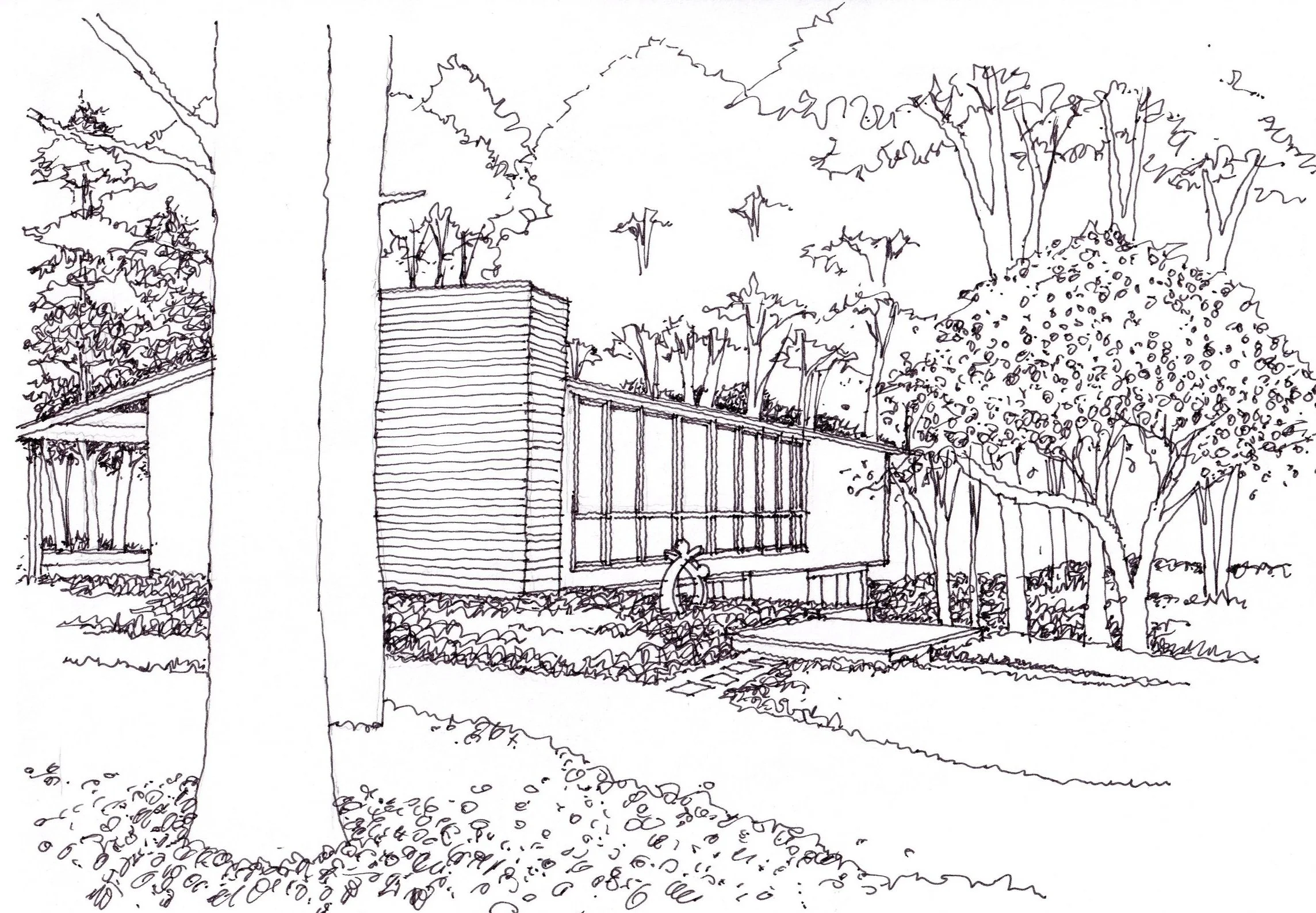 • Landscape as background: the creation of outdoor rooms features the strong use of plantings as spatial definers, so that they recede to the background, rather than claim the viewer's attention.
